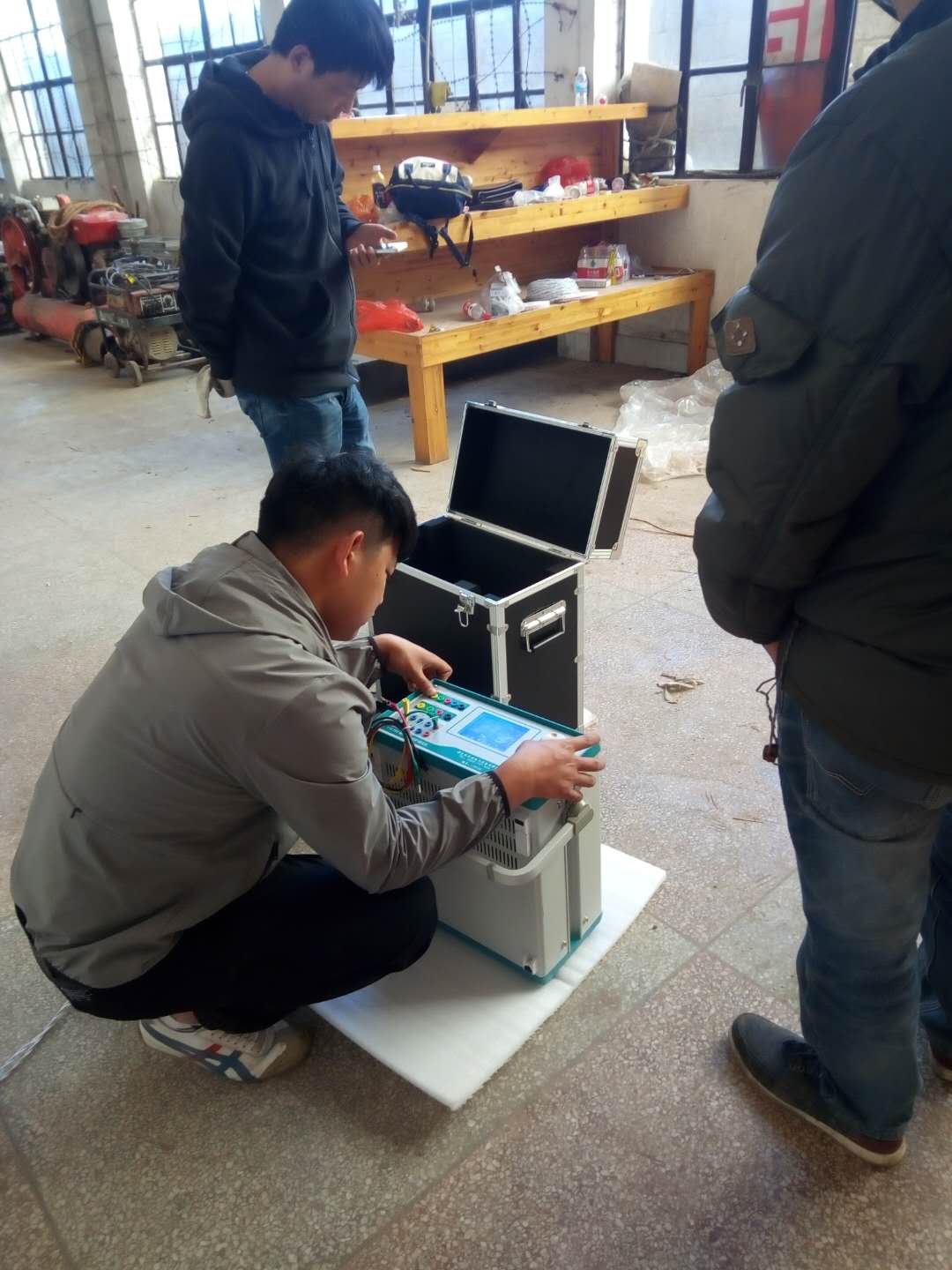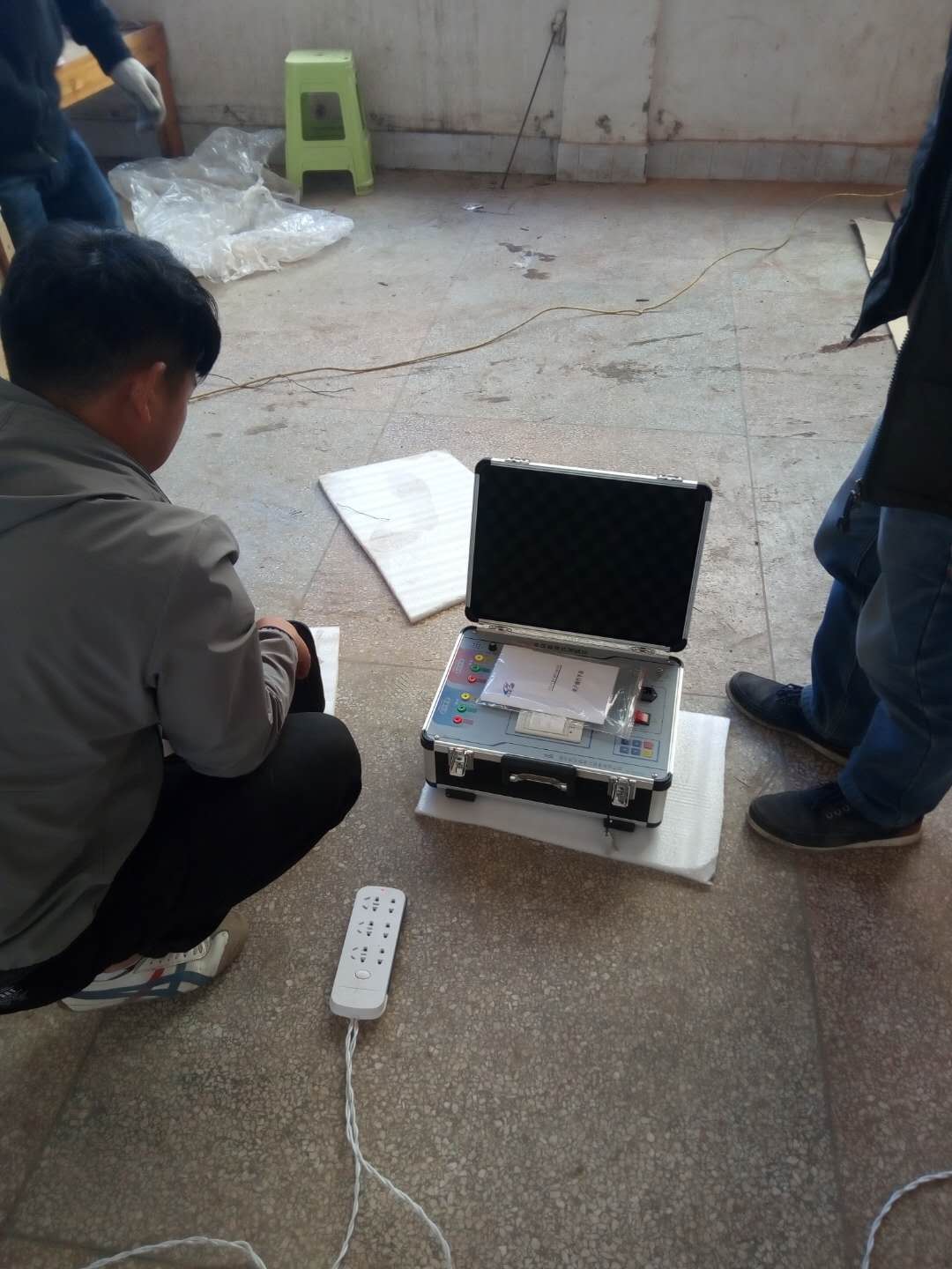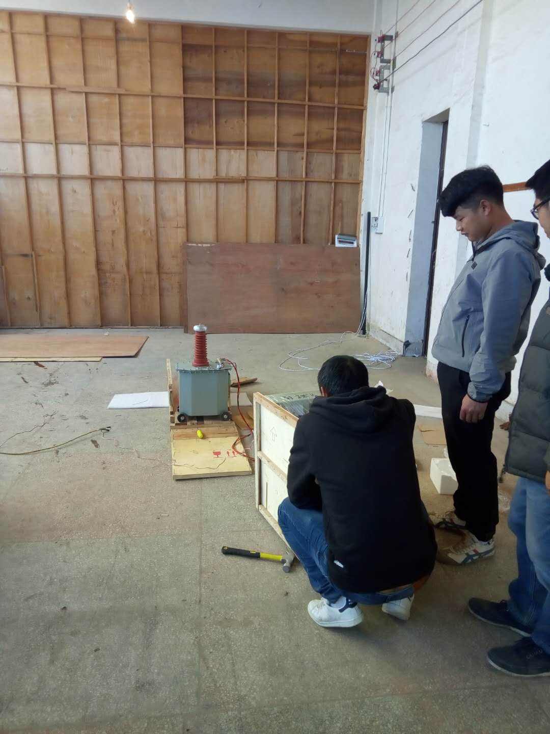 陳工很快抵達現場,與客戶進行面對面的交流,了解客戶的需求和想法。然后開始講解設備,并認真講解怎樣安全操作設備。確??蛻裘靼琢税踩僮饕院?,陳工帶領客戶一起做試驗——YD-J-30kVA/50kV工頻交流耐壓試驗裝置的速度測量,行程測量,電流測量等一系列試驗。我公司的設備比較先進,采用單框芯式鐵芯結構。初級繞組饒在鐵芯上,高壓繞組在外,這種同軸布置減少了漏磁通,因而增大了繞組間的耦合。產品的外殼制成與器芯配合較佳的八角形結構,整體外形顯得美觀大方。我公司產品具有體積小、重量輕、結構緊湊、功能齊全、通用性強和使用方便等特點。特別適用于電力系統、工礦企業、科研部門等對各種高壓電氣設備、電器元件、絕緣材料進行工頻或直流高壓下的絕緣強度試驗。