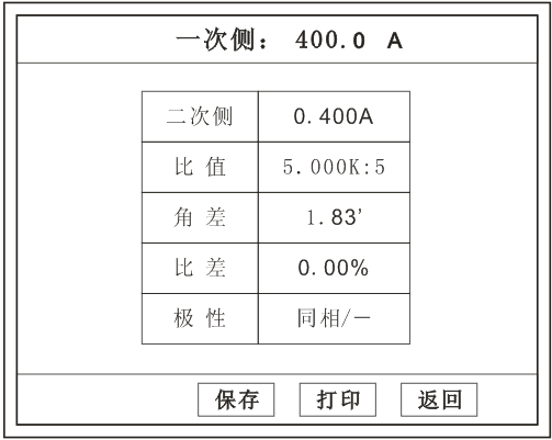 試驗前請檢查 參數(shù)設置 里的額定變比是否與被測CT額定變比是否一置。不一置時將導致比值與比差的錯誤。