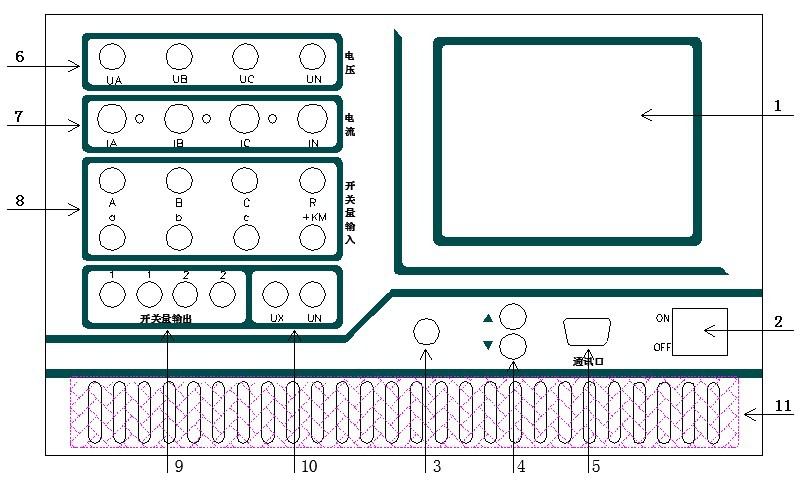 9.開關量空接點輸出,2路。空接點容量:DC:220V/0.2A; AC:220V/0.5A
