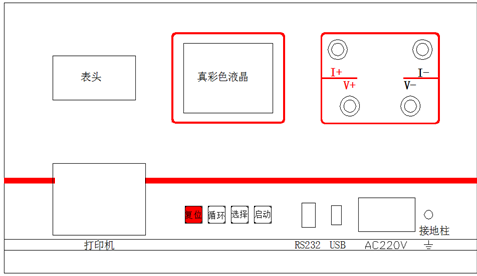 啟  動  鍵   輸出電流選擇完畢后按下此鍵,微機控制實現全部測試過程。
