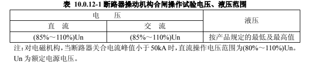 1)當(dāng)操作電壓、液壓在表 10.0.12-1 范圍內(nèi)時,操動機構(gòu)應(yīng)可靠動作