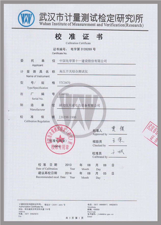 轉(zhuǎn)載:"YTC3970高壓開關(guān)動特性測試儀鑒定證書" 請注明來源于儀天成電力。 更多技術(shù)問題請致電儀天成電力客戶服務(wù):027-87876585,技術(shù)部專線:027-87876585,在線客服:
